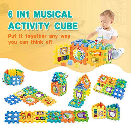 AKILION Baby Activity Cube Toys with Lights & Music, 6 in 1 Electronic Shape Sorter Toys, Bead Maze, Early Development Educational Learning Toys for Boys Girls, Kids Toddler Infant First Birthday Gift