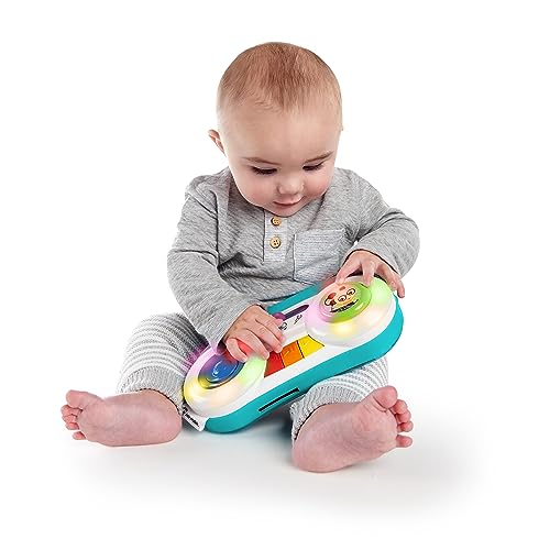 The Toddler Jams musical toy by Baby Einstein lets baby move and groove to 30+ melodies. Introduce a world of music with selections ranging from classical songs to pop music to global genres. This take along toy has an easy-to-grab handle for a concert on the go. A colorful light show plays along to the beat of the music, encouraging development of fine motor skills as baby dances to the rhythm. With bright buttons, he can pause, skip, replay or re-mix it up. This music player is a toddler toy that sparks a lifelong love of music.