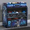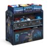Keep your Batcave neat with this Batman Design & Store 6 Bin Toy Storage Organizer by Delta Children. A storage essential and colorful sticker station and all in one, this toy organizer is boldly decorated with fun Batman graphics and includes reusable vinyl stickers. Kids can rearrange the stickers on the sides of this organizer for hours of endless storytelling, adding a much-needed incentive to clean-up time. The sturdy wooden frame holds six fabric bins sized for every type of toy, so you can store books, blocks, and more. An eye-popping addition to their playroom or bedroom, this toy organizer makes cleaning quick and easy.