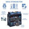 SIZE: Assembled dimensions: 24.61”L x 11.81”W x 26.57”H | Three medium bins: 7.75”L x 9.5”W x 5”H, two large bins: 11.6”L x 9.5”W x 5”H, one extra-large bin: 23.5”L x 9.5”W x 9.5”H | Easy assembly
