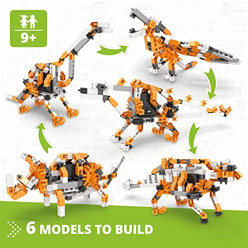 Learn all about the dinosaurs and how they lived in the prehistoric era on Earth. Build 5 motorized dinosaur models such as a brontosaurus, a stegosaurus, a triceratops, a pterodactyl and an ankylosaurus and bring them to motion. You can find easy-to-follow building instructions for all models either online or in the booklet included. The booklet provides detailed explanations of the different scientific principles applied and incorporates innovative experimental activities for hands-on learning. A Quiz section is also available to challenge your newly acquired knowledge. Number of parts included in pack: 123. Suitable for ages 9+.