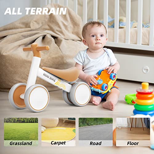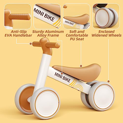 FAYDUDU Balance Bike for 1 Year Old Ride On Toy for 1 2 Years Old First Bike for Girls Boys Baby Bike Walker No Pedals Toddler Trike for 10-24 Months (Brown)
