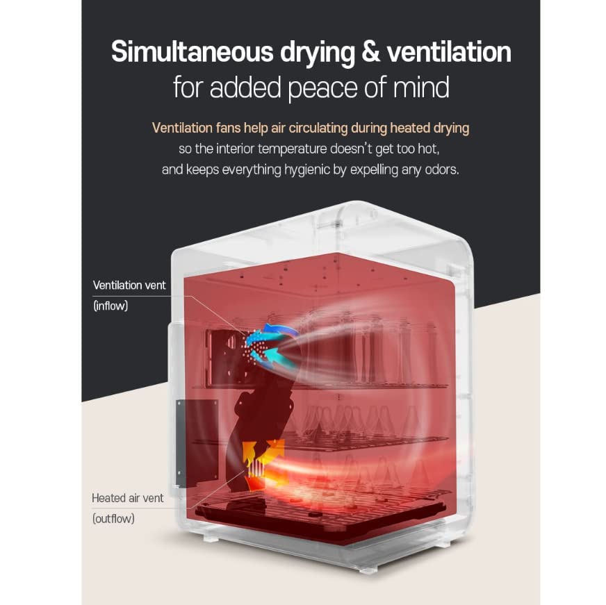 1 Extra Stainless steel rack($30) + tooth brush holder($15) + Free delivery Limited stocks only! The Haenim Smart UV Steriliser flex 5th Generation incorporates performance and style as you have never experienced before. This tabletop steriliser fulfills all of your sterilising needs. It can eliminate up to 99.9% of germs and bacteria from bottles, teats, dummies, teethers, small toys, and breast pump accessories, which gives your baby more protection. The ultra-modern and sophisticated white and gold design looks great in any kitchen or butler’s pantry. You can disinfect all your baby’s products simply and effectively at the touch of a button. The Haenim Smart UV Steriliser 5th Generation saves time with its large capacity of up to 16 bottles! Additionally, the Smart Storage Function keeps items Sterile with automatic sterilising every 2 hours, to ensure bottles and accessories are sterile whenever you may need them. The Turbo function incorporates a powerful and quick-drying function. The Clean Alert detects when the steriliser needs to be cleaned, which is simply done by wiping down the interior with a clean damp cloth. It also incorporates the world’s first sensor to detect if there is any UV light failure and will notify the user of any UV failure for further reassurance.