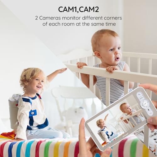 ieGeek 2K Baby Monitor with 2 Cameras, WiFi Video Monitor with 5 inch HD LCD and 2 Way Audio, PTZ Auto Tracking, Mobile APP and Wireless Monitor Control, Cry Detection, Temperature