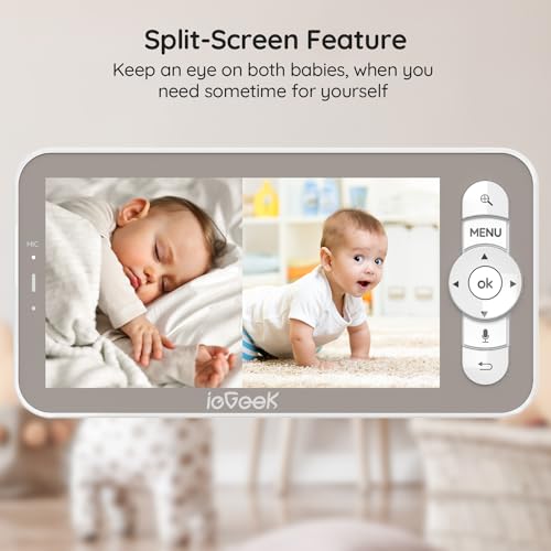 🏠【2 Cameras & Split-Screen Control】ieGeek Baby 1T monitor supports up to 2 cameras. you can freely view 2 rooms side by side on the monitor screen at the same time with the 2 cameras and split-screen function. Also, you can monitor two babies in different rooms or areas through the parent unit to make your parenting easier.