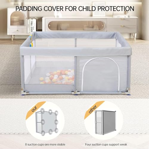 【Safe protection】Playpen baby consists of thickened stainless steel tube, high-density Oxford cloth, and tough fabric mesh. Eight suction cup bases can greatly enhance the stability and effectively prevent the fence from tipping over, soft and odorless, and easy to clean, can wash your hands and wipe them with a wet cloth and soap.