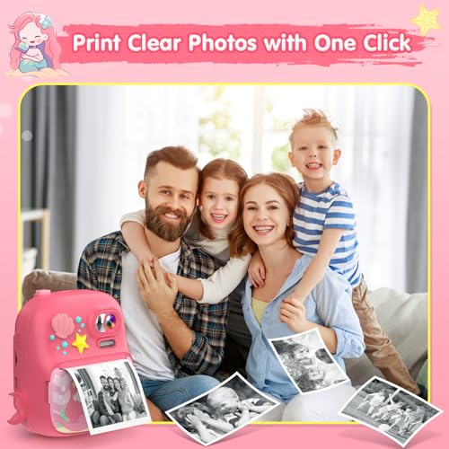 🖨️【Safe Toy for Kids】TIATUA instant camera for kids utilizes inkless printing technology that requires no ink or toner, making it easy and safe to print. The printing paper does not contain BPA or other harmful ingredients and the quality mermaid silicone case effectively avoids the print camera from being dropped or bumped. What a safe and reliable toy for kids!