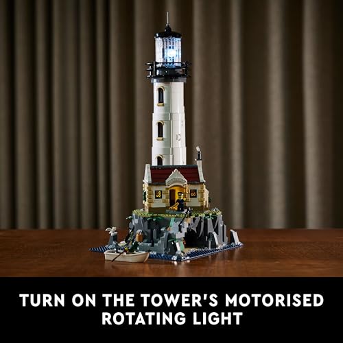 LEGO Ideas Motorised Lighthouse Set, Interactive Model Building Kit with Working, Rotating Lights and a House, Relaxing Arts & Crafts Activity for Adults, Home or Office Decor for Men & Women 21335