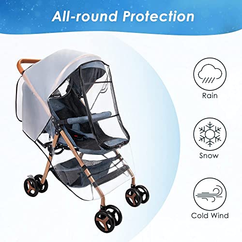 ☔TRANSPARENT COVERS & EYE PROTECTION — Our universal pram rain cover is strong and won’t be easy to tear, and the front opening window with a hardboard can effectively provide additional protection from the sun, good for baby’s eyes protection.