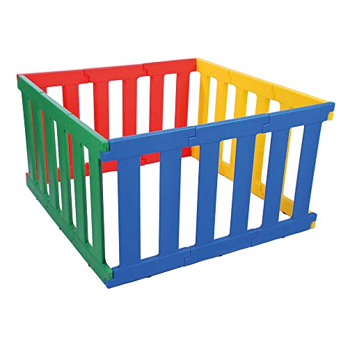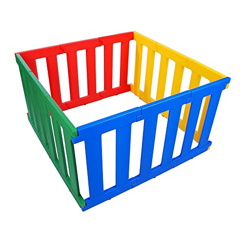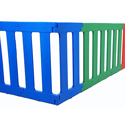Includes 12 panels (3x Red, 3x Blue, 3x Green & 3x Yellow) and can be transformed into a barrier, or multiple shape configurations, or extended to a larger playpen with the Extension Kits (sold separately