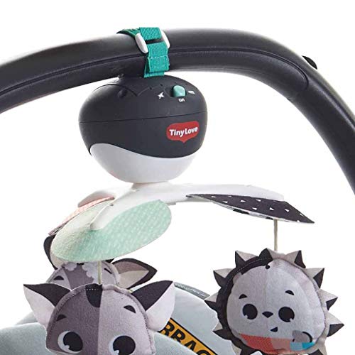 The Tiny Love mobile offers 5 different melodies with 30 minutes of playing length, including mute switch