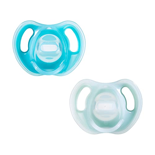 Tommee Tippee Ultra-light Soothers, 6-18 months, 2 pack of one piece silicone, BPA free soothers, Assorted Colours