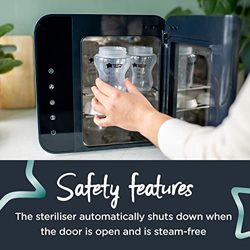 Safety: For the safety of you and your little one, the UV Steriliser has an auto shut down feature when the door is opened, and it uses steam-free sterilising, so bottles are cool to touch once sterilised