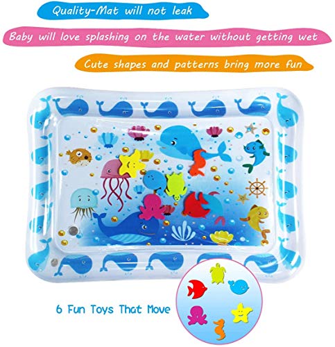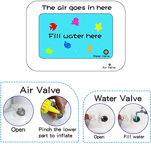Color: blue square Highest quality and 100% leak proof Our baby water pads are made of 100% BPA-free and non-toxic HEAVY DUTY PVC durable material. Each of our baby water pads has undergone rigorous leak-free and durability tests. No need to worry about messy accidents. Multiple baby protectors safety edge 100% for your baby’s safety, you will no longer worry about your baby being hurt by sharp objects! Promote baby growth This is a sensory enjoyment that promotes brain development. As the baby grows, provide more fun! The perfect belly pad for the little angel! 100% guarantee the baby’s health and healthy development Benefits of belly pad: Prevent head flat Hand-eye coordination Perception Motor skills Bowel motility promotes bowel movements Color perception Visual development Promote brain development Parent-child interaction can enhance feelings Tips: Baby needs care at all times The mat should lie flat to prevent the baby from falling and being injured Keep away from sharp objects Add a spoonful of vinegar when adding water to prevent mildew Keep away from sunlight when not in use Wash and dry the mat before use specification: Material: 0.3 food grade 16P environmentally friendly PVC Age range: more than 3 months Packing size: 7.9 x 2.4 x 7.1 inches Packing: 1 x water play mat, 1 x user manual,