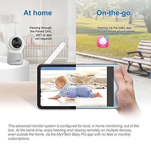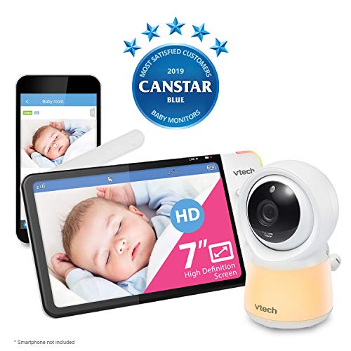 The VTech RM7754HD Smart Wi-Fi 1080p HD Video Monitor with remote access allows you to stay close to your baby when you are at home, on the move or away. This monitor features both Direct Wi-Fi mode – for direct connection between parent unit and baby unit without the need for a separate Wi-Fi network, and Router mode – which uses your home wireless network to stream live video and audio from the HD camera unit to the free MyVTech Baby HD app. It allows you to maintain a constant connection to your baby. The RM7754HD Video Monitor uses the MyVTech Baby HD app to let you instantly see and hear what’s happening with your baby from anywhere in the world from your smartphone or tablet. The VTech RM7754HD Smart Wi-Fi 1080p HD Video Monitor has a 7-inch colour parent unit with a 1080p HD camera with automatic night vision, night light, 4x local digital zoom and 10x remote digital zoom. Two-way talk with the camera from the parent unit or remotely via the app. Comes with 5 soothing lullabies and 4 natural sounds, temperature sensor, motion detection, sound activation mode. Secure and encrypted local and remote video transmissions. It can pair, view and control up to 2 cameras on the parent unit and the VTech app (RM714HD sold separately). Multi-cam viewing modes are single cam, split-screen or patrol mode.