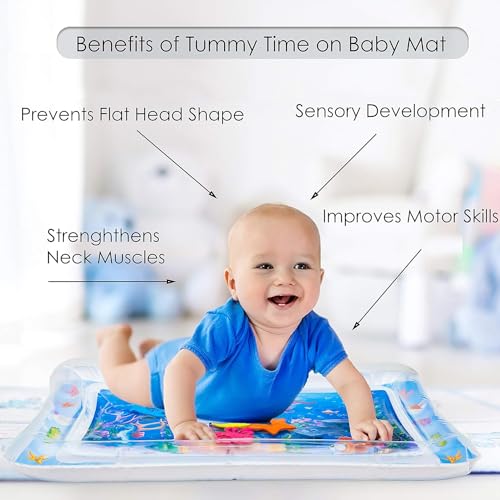 【Make Your Time Easier】: This water mat has bright and colorful seabed world patterns, cute and beautiful marine animals, which can make your baby love doing exercise. It can not only make baby exercise the muscles of the neck, shoulders, back and limbs, but also make the baby get sensory enjoyment. In addition, it can prevent flat head with baby