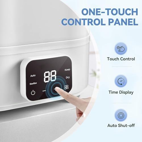 YOPOWER Baby Bottle Sterilizer, Electric Steam Bottle Steriliser and Dryer, 4-in-1 Baby Bottle Steriliser with LED Touch Screen, White